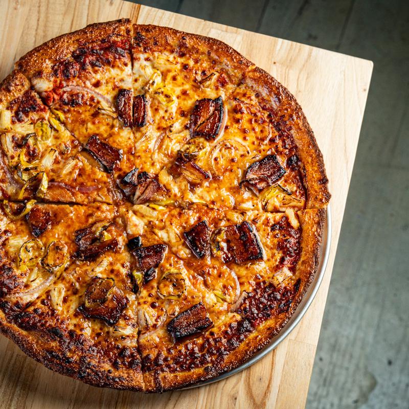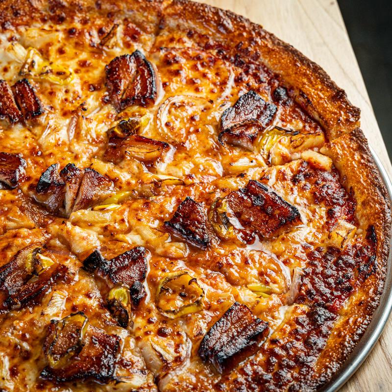 Small $19.00 | Large $25.00 • Pork belly, pineapple, and banana peppers w/ a spiced tomato sauce & drizzled w/ hot honey.