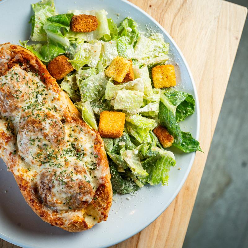 Italian bread filled with meatballs, mozzarella, provolone, with mayo & marinara.