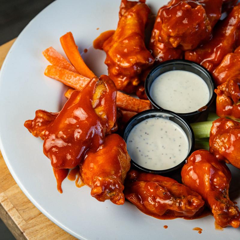 Brined and fried to perfection • Sauces: Buffalo, Lemon Pepper, Garlic Parmesan, Hot Honey BBQ, Thai Chilli, Gochujang, Nashville, BBQ & Honey Wasabi Ranch